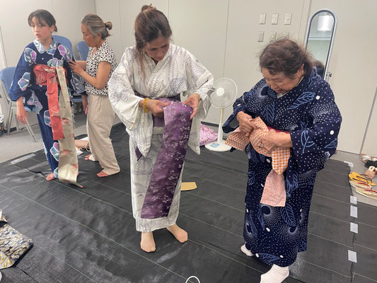One participant from Vietnam was so pleased with how well she dressed that she went home without taking off the Yukata, saying “I want to show my family” 🎶 Thoroughout the workshop, participants helped each other , and the lively atmosphere made the hour fly by ♪.