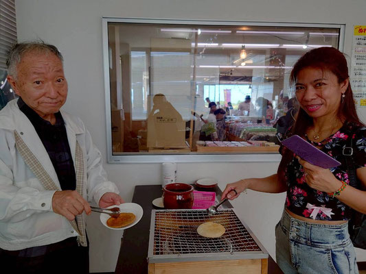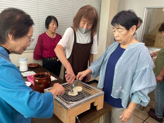Next, we tried hand-grilling rice crackers at Choshi Dentetsu’s “Nure-Senbei Station”! Everyone did great, and the freshly grilled senbei we made ourselves were truly exceptional—people were delighted!